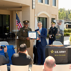 David Spector (Chairman and CEO, Pennymac), MAJ Tyran Askew (L.A. Battalion Executive Officer) along with Soldiers from the L.A. Recruiting Battalion. (Photo: Business Wire)